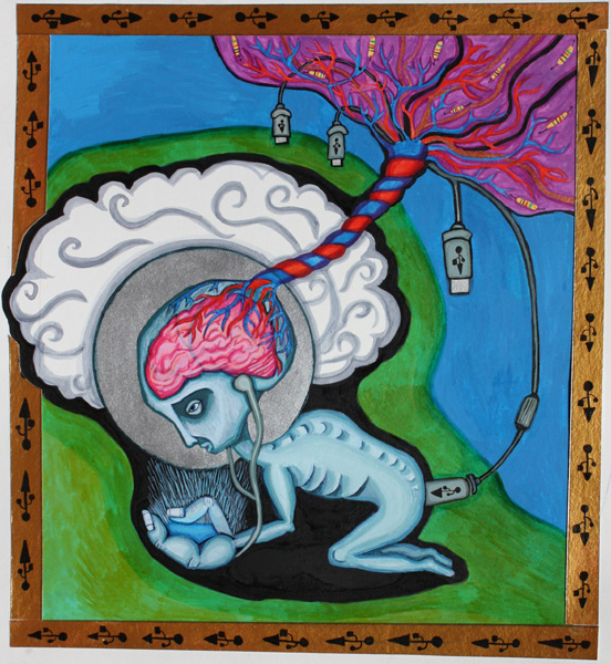 i-Pictures 2015 All works ink and metallic acrylic, collage on paper Hive Mind 40x51cm Connected 25x24cm Internet as a God 33x43cm iHuman 26x24cm Future Human 41x34cm Demon of the Cord 41x34cm ©2024 Peta Hinton Like Loading...